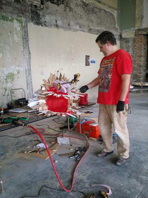 Topher Crowder Creates a Ceremonial Mask at Art in Eight, downtown Muskegon.