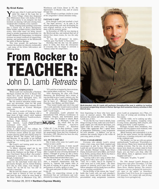 John Lamb Teaches Songwriting 11.7 and 11.14, Blissfest, North of Harbor Springs.